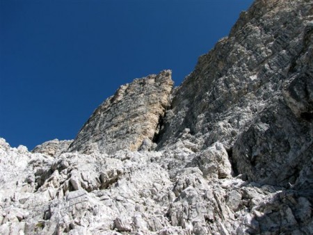 Nepričakovano me je presenetila popolnoma očiščena stena. Ne, da je kdo odstranil majave skale ali pometel grušč, tega je toliko, da bi ga lahko prodajali, vse kline je nekdo!? preprosto izbil ali polomil. Tudi vsi svedrovci so ali polomljeni ali brez ploščic. No, razen začudenja ni bilo sile. Nameščanje varovanja je vzelo nekaj časa, navzdolgrede je bilo treba malo bolj popaziti in tura je bila opravljena.
