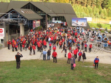 V bližini kongresnega središča se nahaja večje smučišče. Lpkalni, profesionalni reševalci so nam prikazali celoten potek reševanja iz gondole in sedežnice. Tehnika reševanja se bistveno ne razlikuje od že videnih, lahko trdim, da je naša tehnika primerljiva, osebno menim, da celo mnogo bolj dodelana. Kar nekaj pomislekov smo imli ob opazovanju izvajanja manevrov. S kravatnim vozlom zvezan trak v neskončno zanko, okoli kvadratnega stebra pritrjen s kravatnim vozlov v neugodnem položaju že ne sodi v moderno reševalno tehniko. Sploh ne, če sta nanj obešena hkrati reševalec in potnik med transportom. Poškodovanega potnika so oskrbeli kar na mestu, kjer so ga spustili iz gondole. Le slučaj je botroval, da naslednji potnik ni pristal na ponesrečenem z domnevno poškodovano hrbtenico. Ko so poškodovanega končno namestili na transportno sredstvo so mu zgornji trak, ki naj bi potekalčez prsa pritrdili točno.čez vrat. Na srečo je dovolj zgodaj pocukal reševalca, ki je napako popravil.