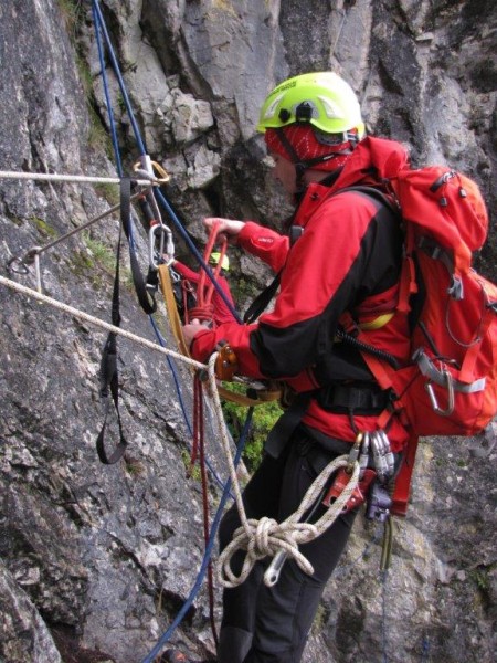 Žal nas je v nedeljo zoprn dež pregnal na rezervno lokacijo, v klet, kjer imamo urejene zasilne poligone za izvajanje vrvnih manevrov.